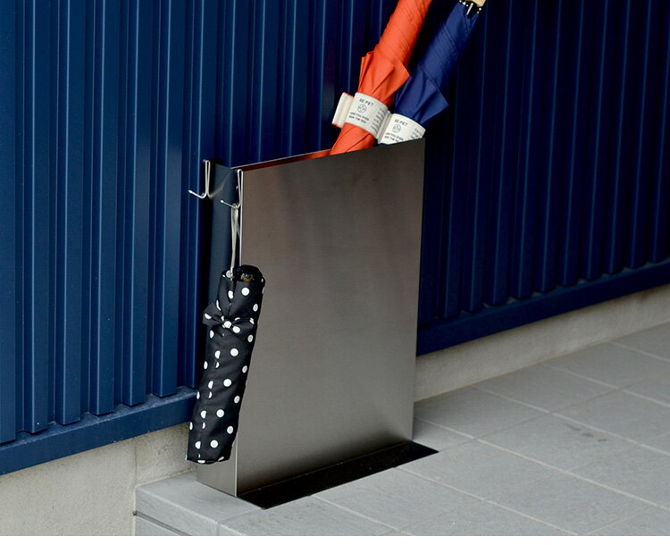 日本製 ステンレス傘立て スリム 幅31cm 奥行12cm 高さ40cm シンプル フック付き アンブレラスタンド 玄関収納 スタイリッシュ かさたて 隙間収納 すき間収納 省スペース 梅雨対策(代引不可)【送料無料】