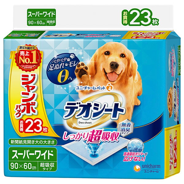 ユニ・チャーム:デオシート しっかり超吸収無香消臭タイプ スーパーワイド 23枚 4520699676066 ペット トイレ シート シーツ 消臭 しっかり超吸収 無香消臭タイプ