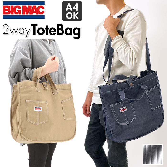 トートバッグ メンズ ブランド 通販 大きめ A4 ショルダーバッグ 2way 斜めがけ 肩掛け 大容量 軽量 軽い 通学 通勤 旅行 布 綿 コットン マザーズバッグ 男女兼用 レディース おしゃれ シンプル 無地 ストライプ カジュアル アメカジ ワークデザイン BIG MAC ビッグマック