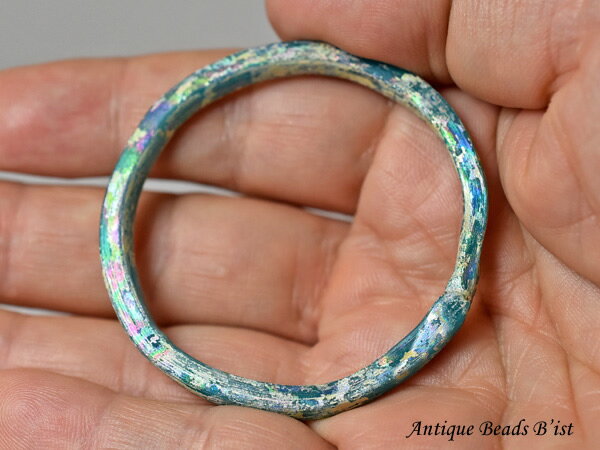 【1910】古代ローマングラス青緑色の七色銀化腕輪【とんぼ玉】【古代ガラス】【ローマングラス】【ビーズ】【パーツ】【骨董】【Ancient Roman glass】【腕輪】【ブレスレット】【送料無料】