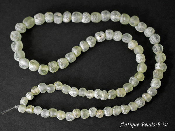 【2206】中国漢王朝時代のエメラルドグリーンのガラスビーズ一連C【とんぼ玉】【蜻蛉玉】【アンティークビーズ】【ローマングラス】【ビーズ】【パーツ】【antiquebeads】【骨董】【銀化】【送料無料】