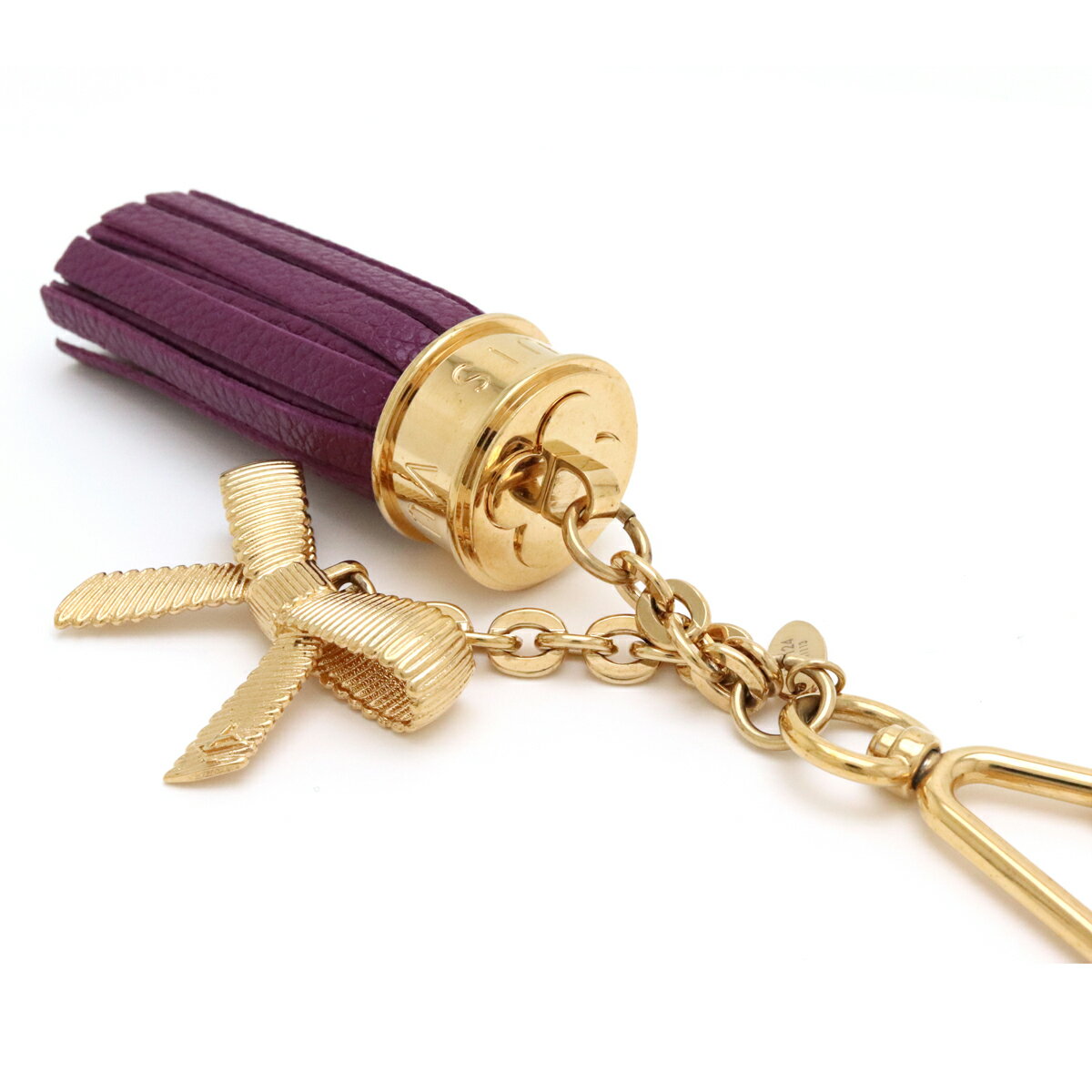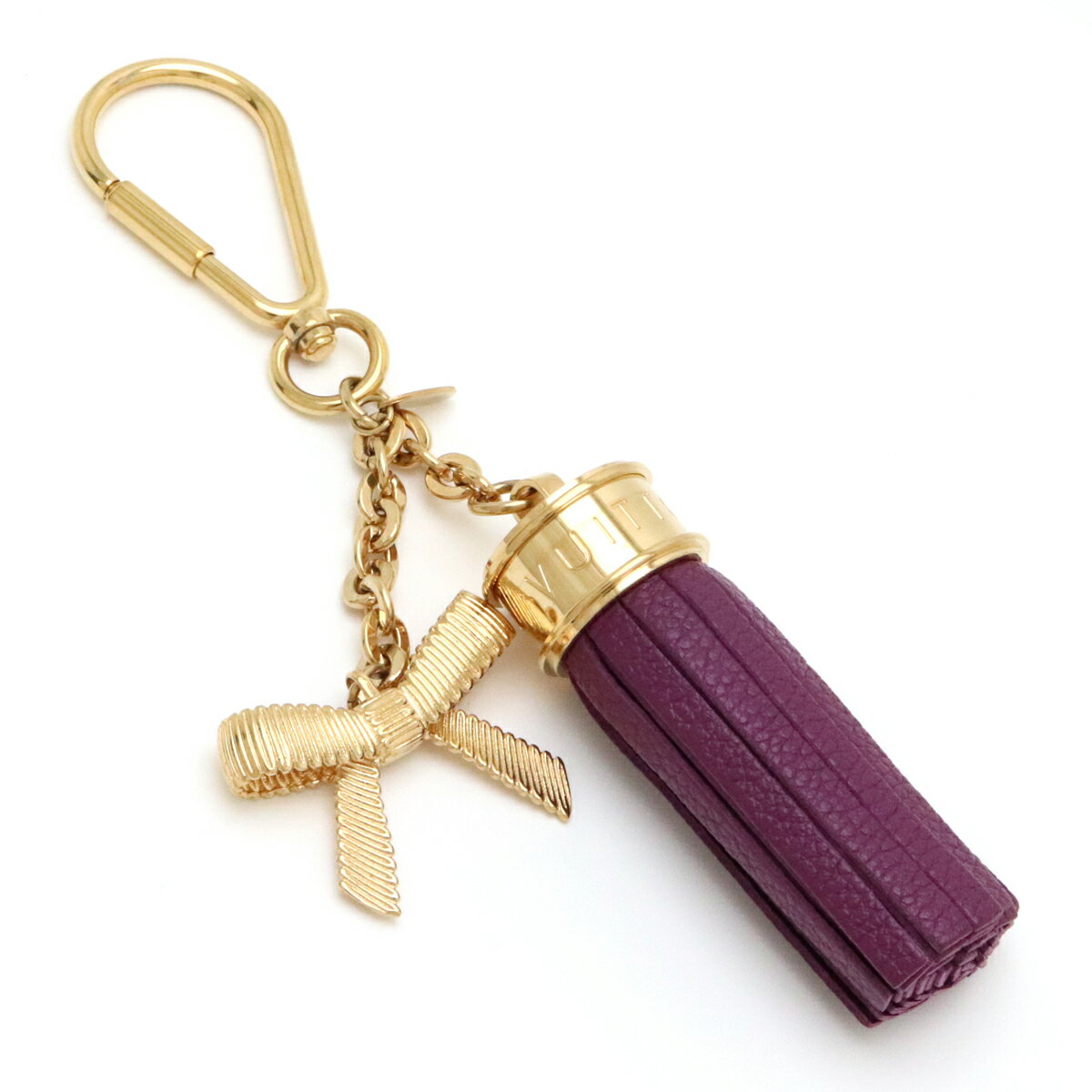 LOUIS VUITTON ルイ ヴィトン ポンポン りぼん フリンジ キーホルダー キーリング バッグチャーム レザー パープル 紫 GP ゴールド M65124 【中古】