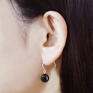 タヒチ黒蝶真珠とK18ゴールドのフープの組み合わせはシックでおしゃれな印象を与えます。