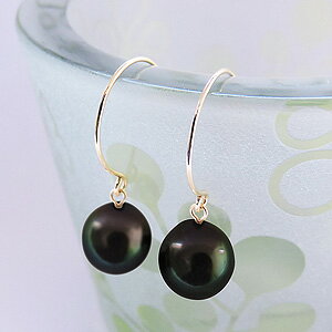 * おすすめポイント 人気のフープピアスにタヒチ黒蝶真珠を組み合わせたシンプルなピアスです。