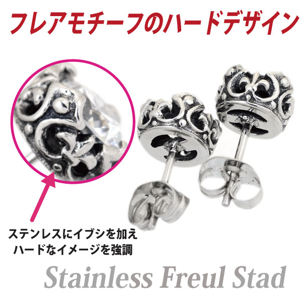 ピアス ステンレス スタッド フレアクラウン 片耳用 金属アレルギーに優しい fourm クリスマス ギフト 母の日 レディース メンズ 男性 女性 ラッピング 包装 袋 誕生日 プレゼント ケース 箱 華奢 可愛い おしゃれ 手紙 記念日 お揃い 母の日