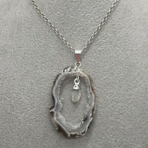 【送料無料】ジュエリー・アクセサリー スライスジオデクォーツポイントライトシルバーメッキペンダントサイキックfetta geodepunto di quarzo chiaroargento placcatociondoloabilita psichiche