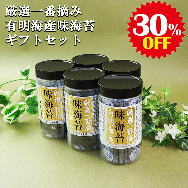 【クーポン利用で30%OFF】 敬老の日 プレゼント 海苔 詰合わせ おつまみ海苔 味付け海苔 送料無料 有明海産味海苔5本(化粧箱入り) セット のり 味付け 味付けのり 味付海苔 ギフト 有明海産 海苔 あじつけのり 味海苔 国産 お弁当 ご飯のお供 詰合せ 朝食 お返し 詳しく見る