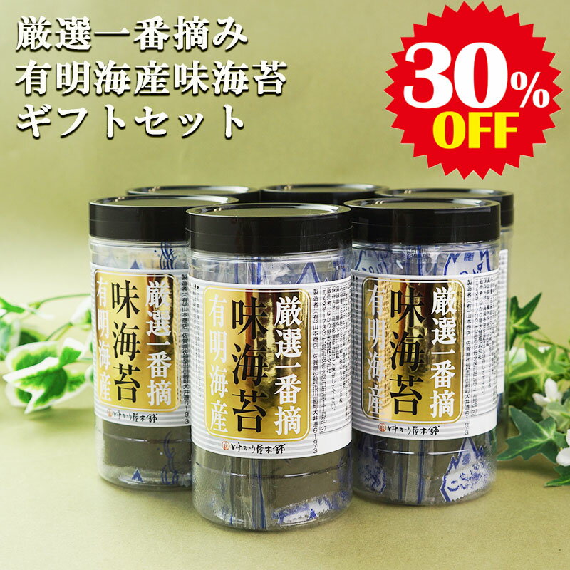 【クーポン利用で30%OFF】 敬老の日 プレゼント 送料無料 海苔 詰合わせ おつまみ海苔 味付け海苔 有明海産味海苔6本 セット(化粧箱入り) のり 御中元味付け 味付けのり 味付海苔 ギフト 有明海産 海苔 あじつけのり 味海苔 国産 お弁当 詰合せ 朝食 お返し 詳しく見る