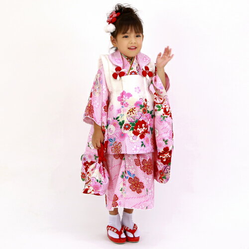 ※こちらはレンタル商品です※ >>レンタル商品ご利用ガイドはこちら 三歳の女の子に七五三被布着物レンタル10点セット!せっかくのお祝いの日だから、いつもより可愛くしてあげたいですね!本格派も納得の正絹製で、美しい装いに。
