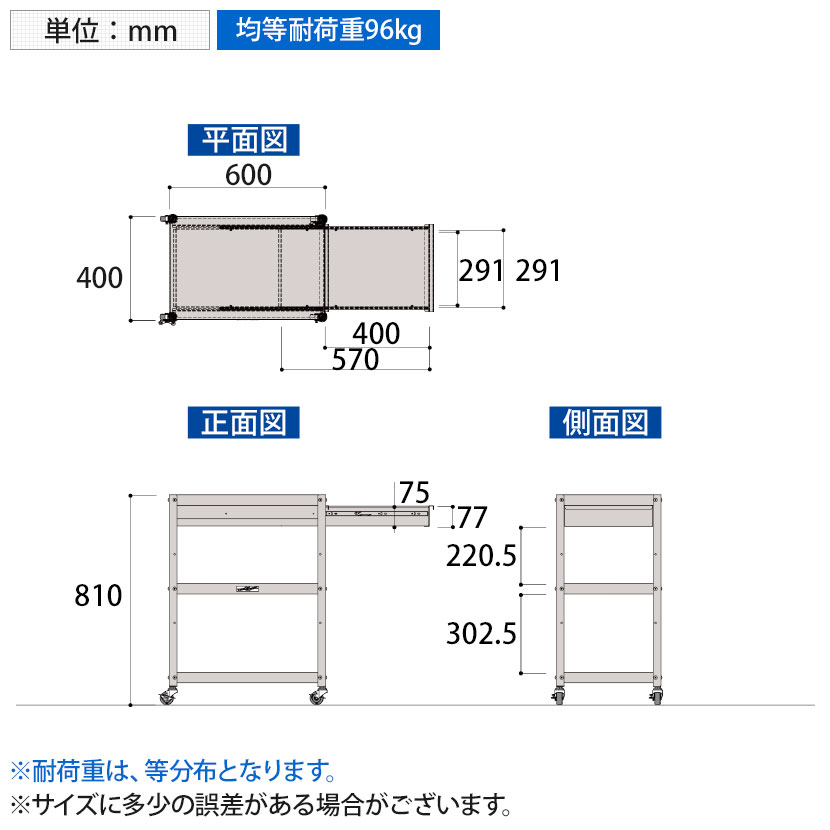 収納物が取り出しやすく、全体均等耐荷重96kg(自重を含む)で、頑丈且つ利便性の高い収納力が魅力です。