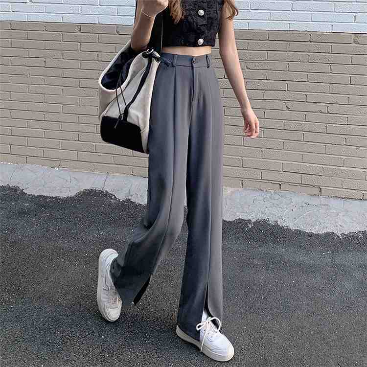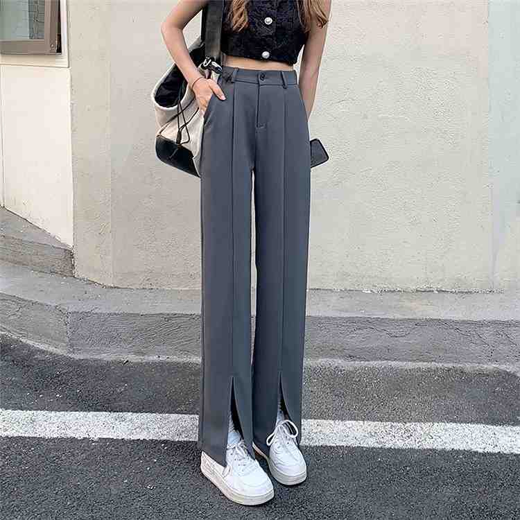 高品質 ハイウエスト スリム スプリット ワイドレッグ カジュアル スーツパンツ【大きいサイズ レディース 夏秋 下着 ボトムス ストレート スキニー ショーツ pants】