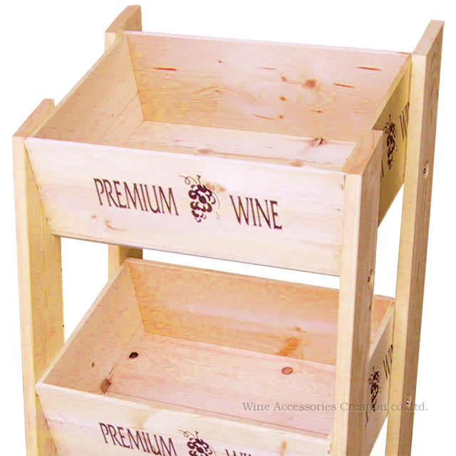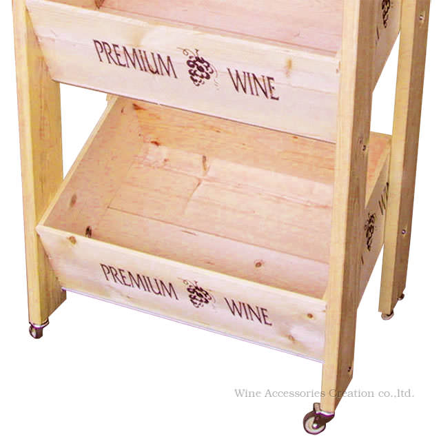ワイン木箱 陳列用3段ラック ナチュラル キャスター付き RJ100WS 沖縄県、各都道府県の離島は送料別途 メーカー直送・ラッピング不可・代引不可商品