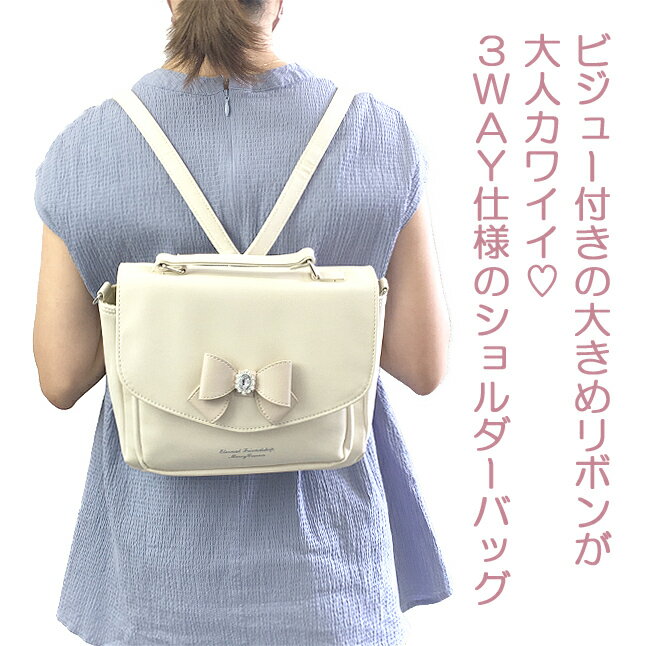 商品情報 ビジューの付いたリボンがおしゃれな大人っぽい3Wayバッグ。