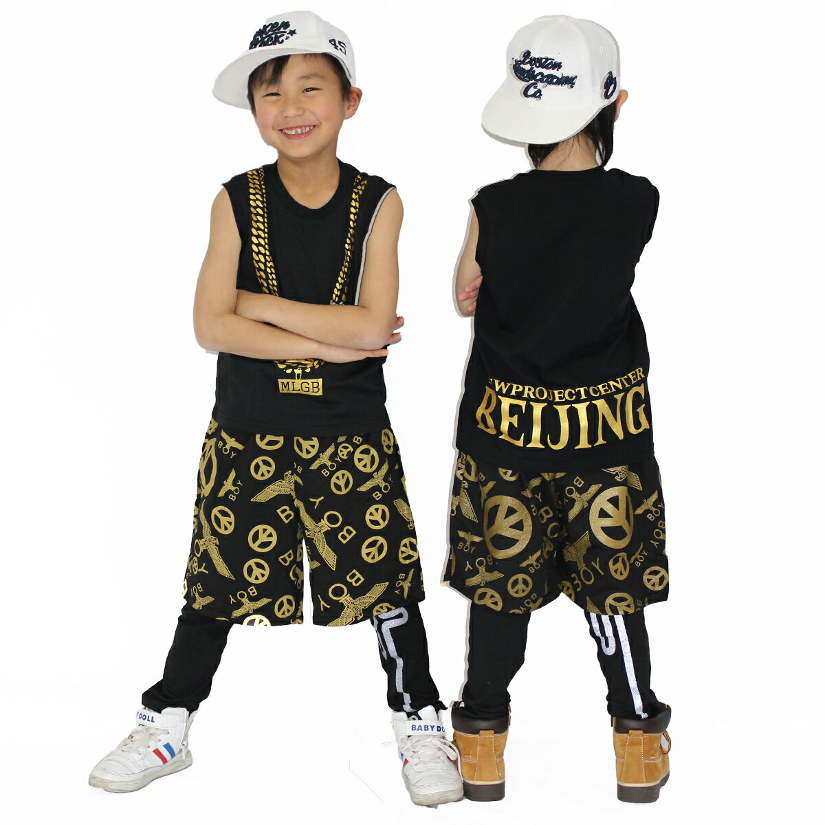 ピースマーク ハーフパンツ ダンス ダンス衣装 ハーフパンツ レッスン着 HIPHOP ヒップホップ ブラック ゴールド 120cm 130cm 140cm 150cm キッズ ジュニア 男の子 女の子 子供服◇子供服yuai♪
